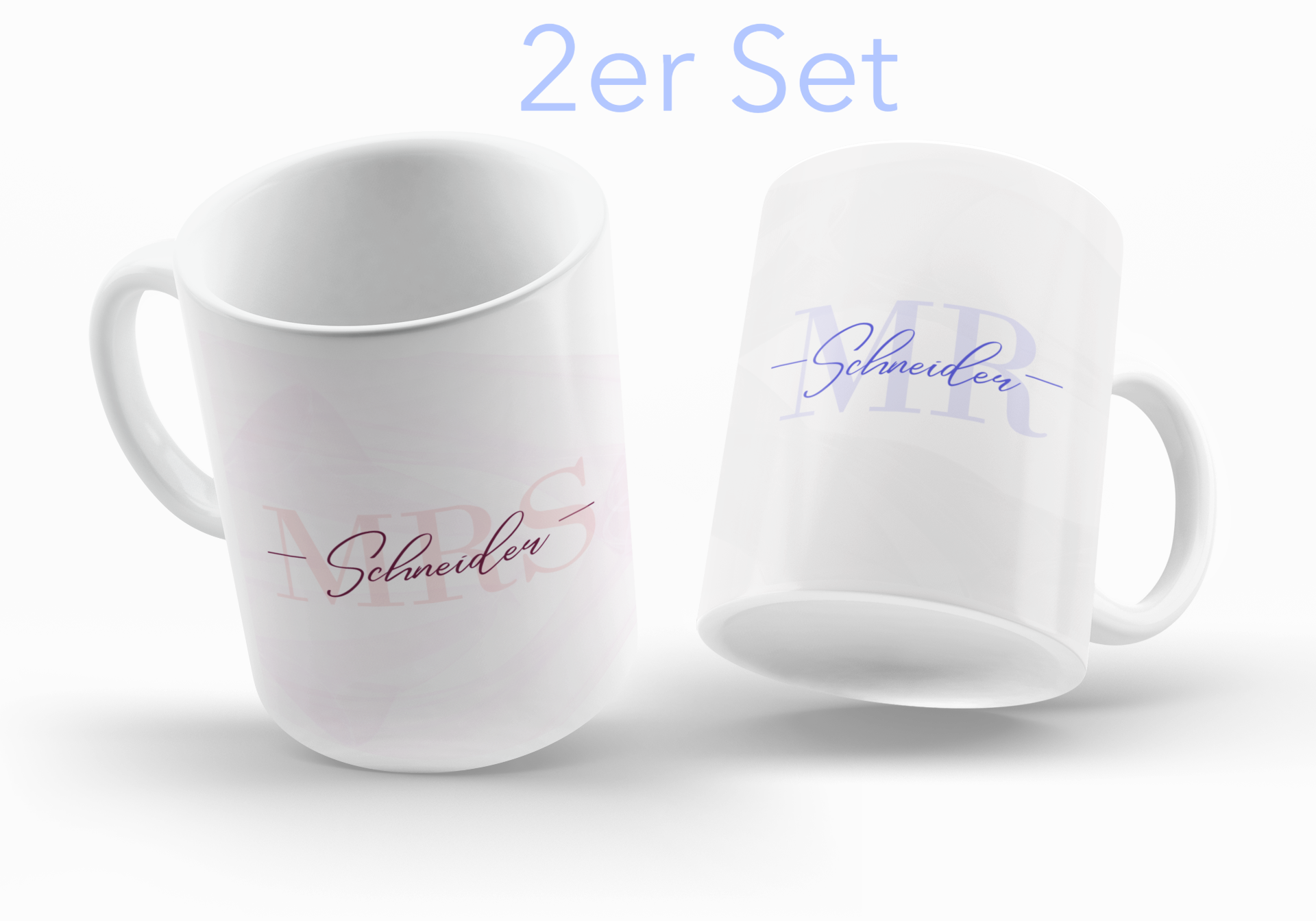 2er Set Motiv Kaffee Becher / Tassen - Hochzeit Mrs. Mr. - Personalisierbar