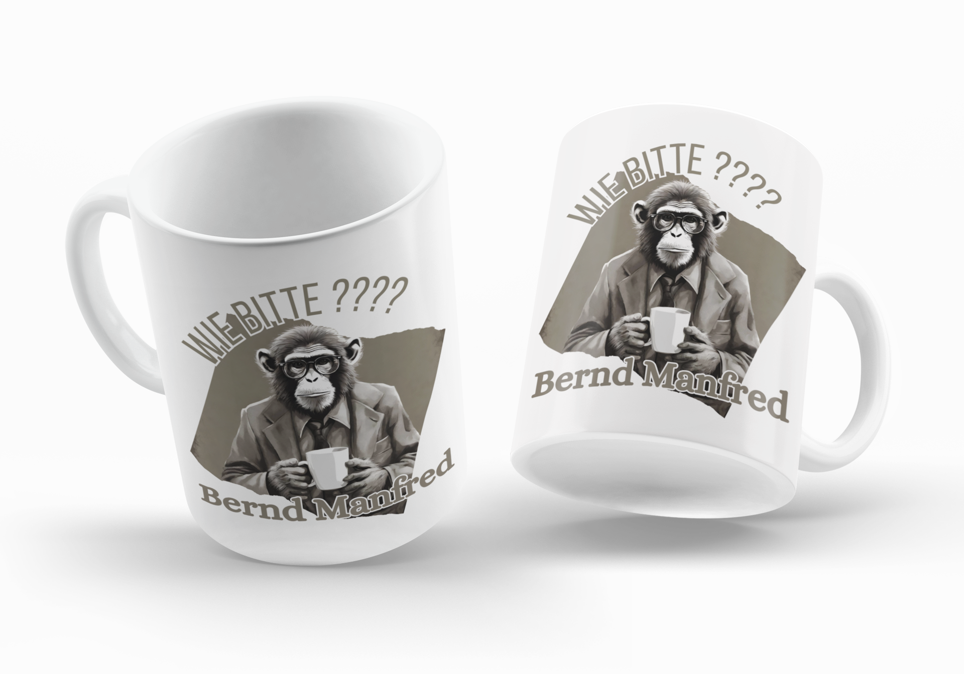Motiv Kaffee Becher / Tasse - Nachdenklicher Affe - Wie Bitte ? - mit und ohne Personalisierung