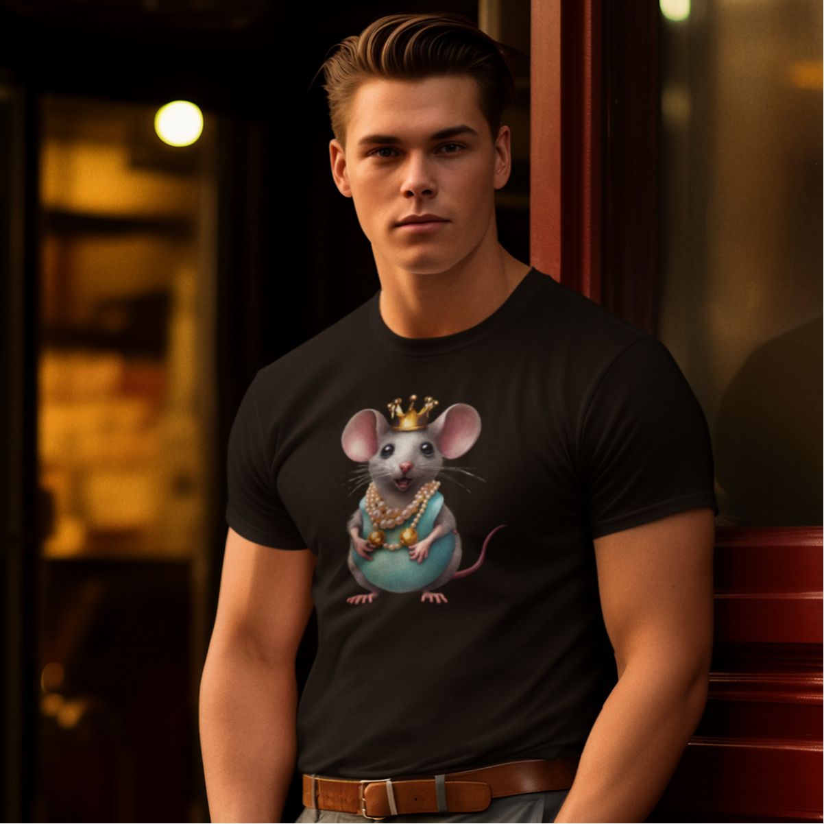 T-Shirt Design Druck Süße Maus mit Krone und Perlenkette in 5 Farben von M bis XXXL