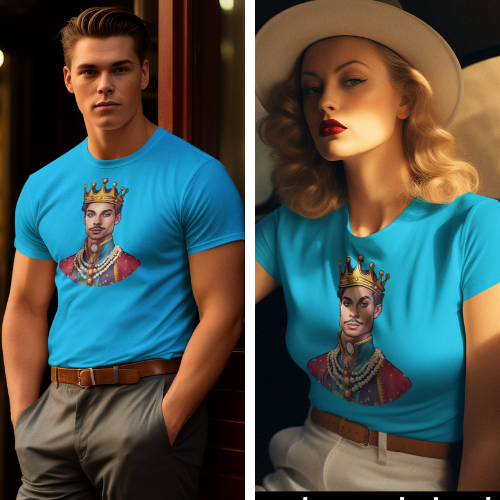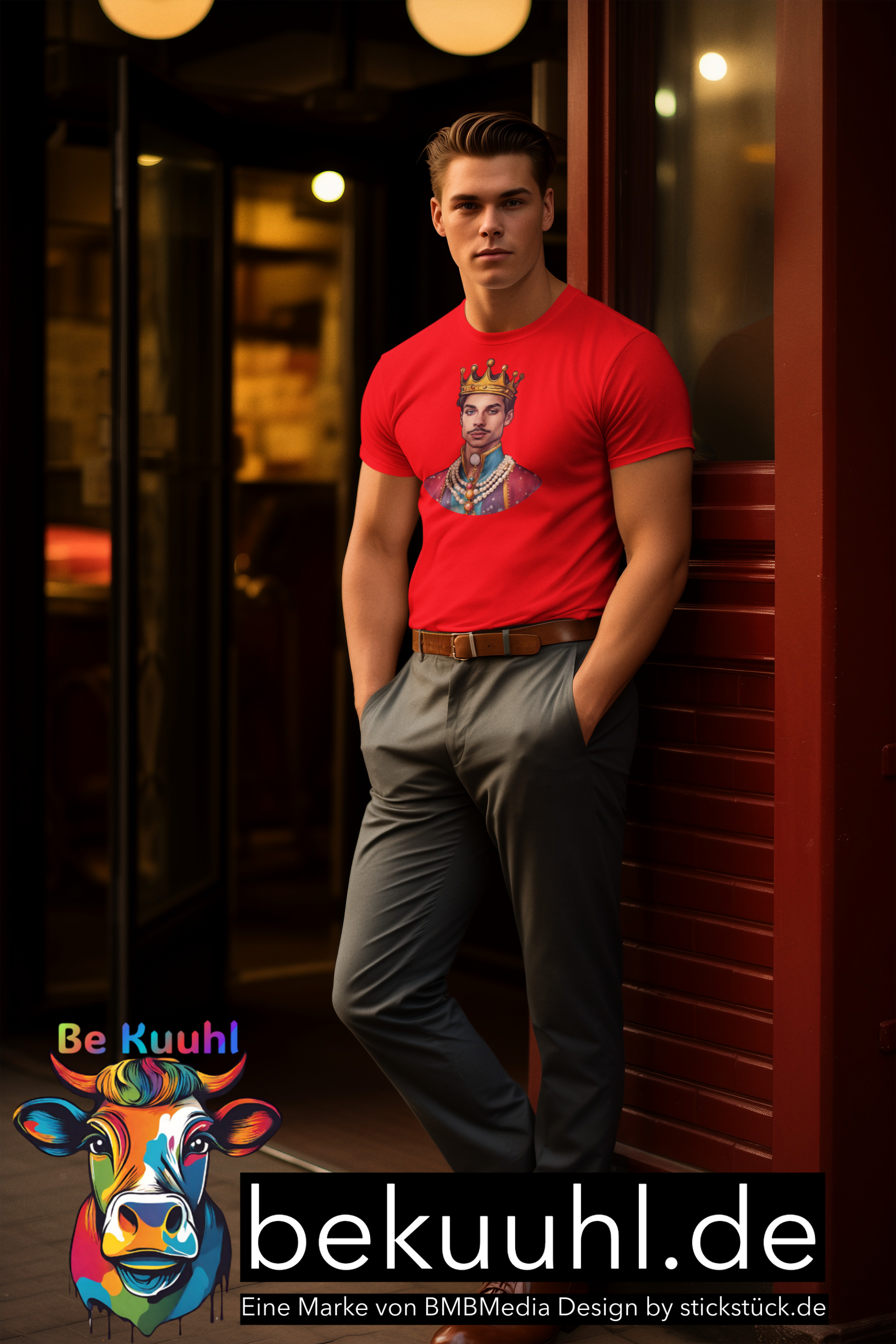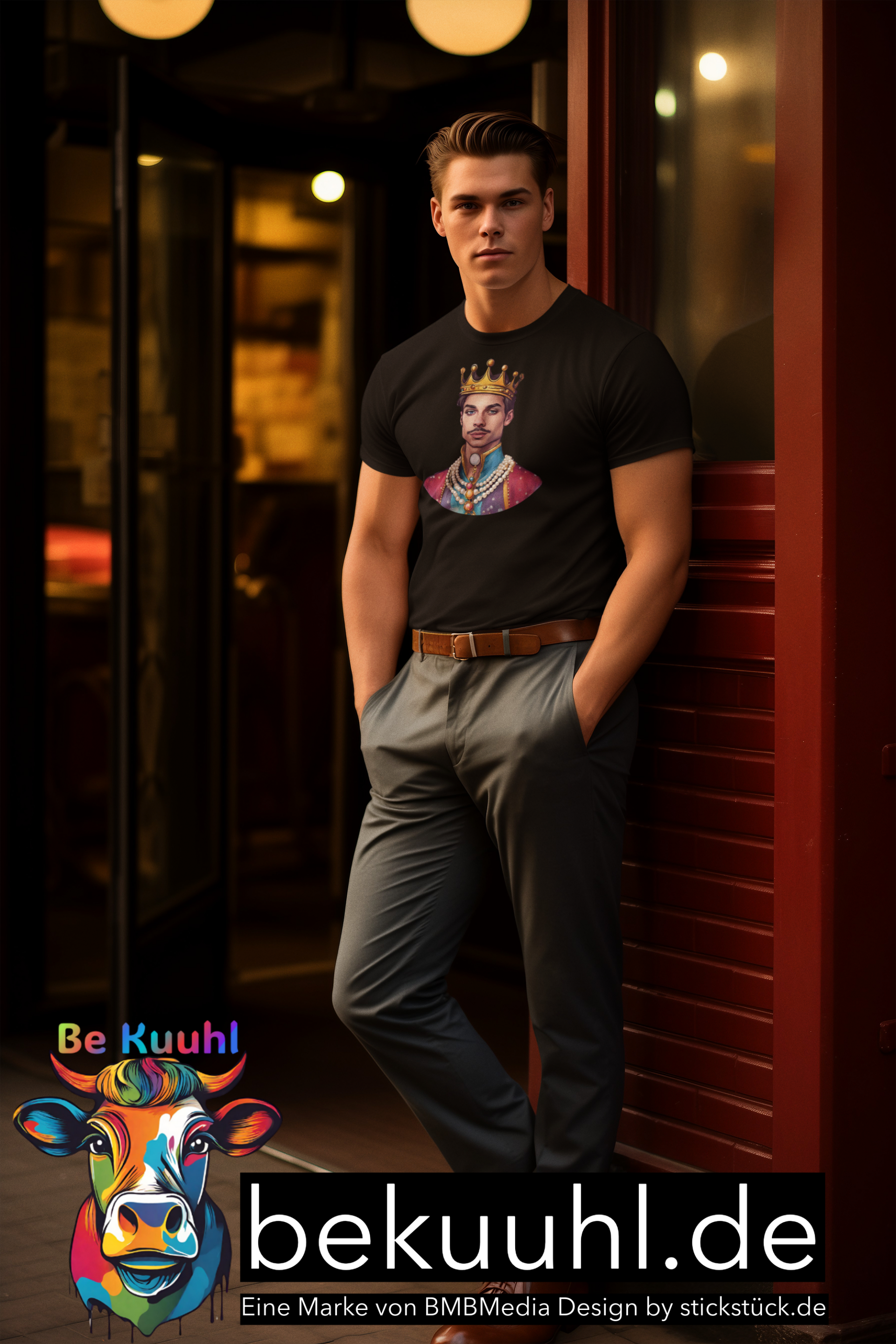 T-Shirt Design Druck Prinz mit Krone und Perlenkette in 5 Farben von M bis XXXL
