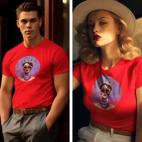 T-Shirt Design Druck Prinzessin mit Krone, Sonnenbrille und Perlenkette in 5 Farben von M bis XXXL