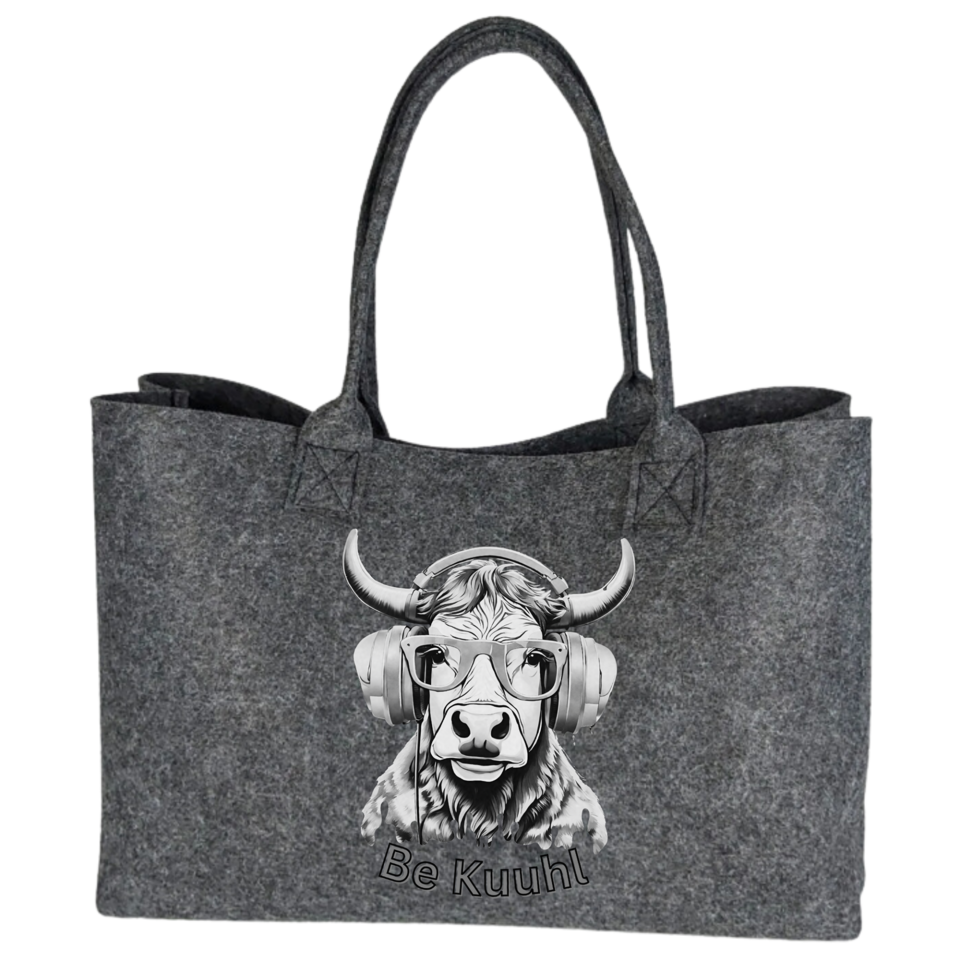 Federleichter Be Kuuhl Shopper inkl. Echtholzboden und Druckknopf - Coole Kuh mit Kopfhörer - DJ Jon White/Black