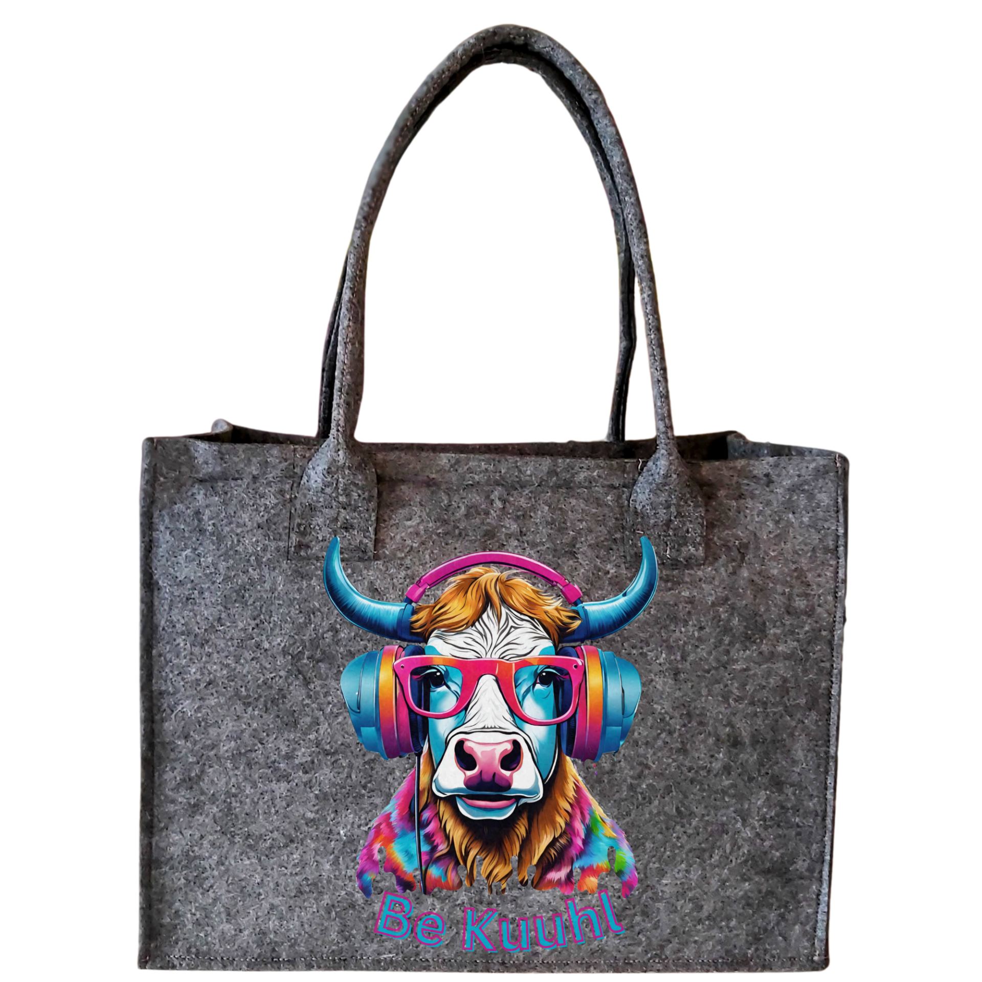 Hand und Schulter Schopper Unisex / Tasche / Einkaufstasche / Arbeitstasche - Be Kuuhl - Coole Kuh mit Kopfhörer - DJ Jon Color