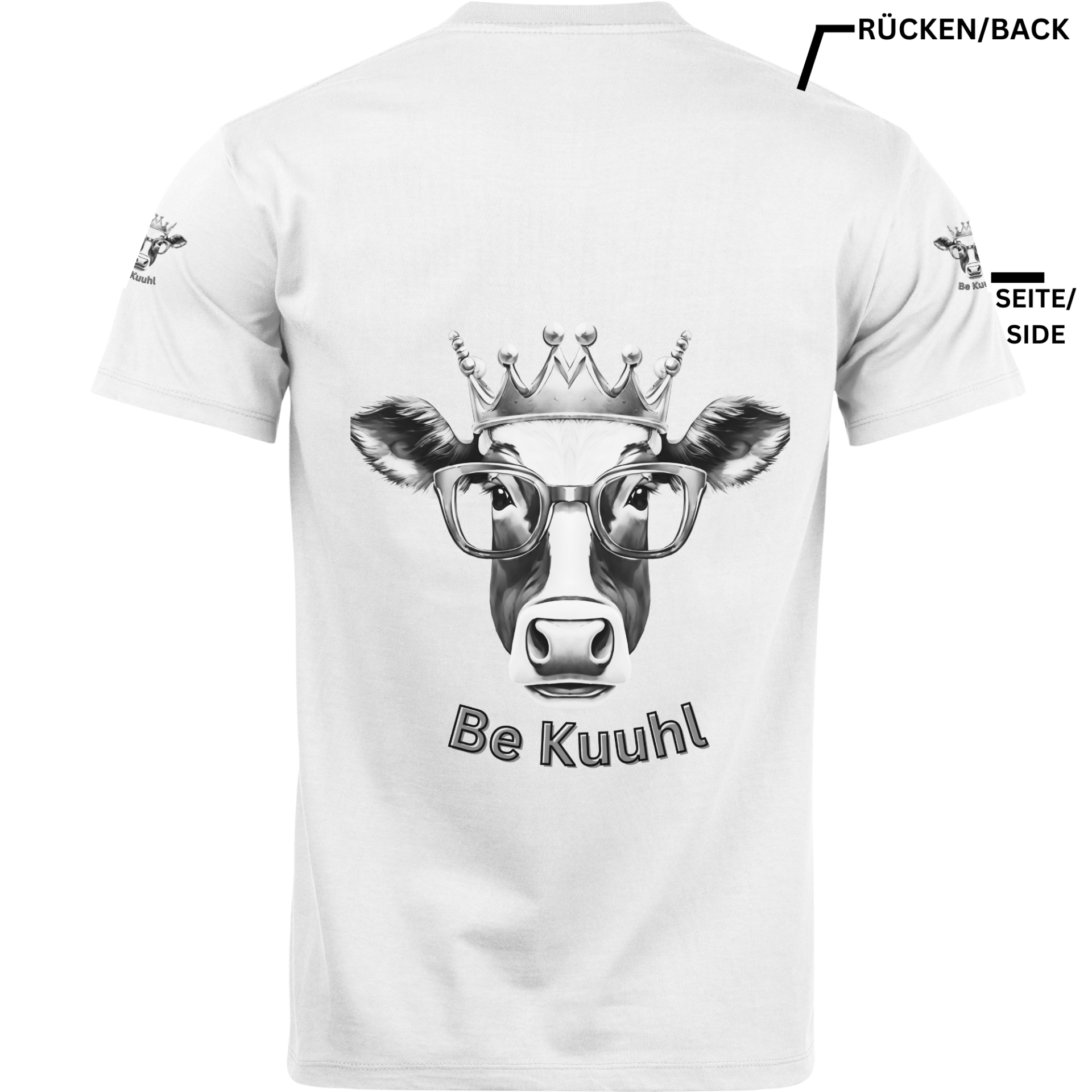 T-Shirt Unisex "Be Kuuhl" 4 Seitiger Druck - König Alfons White/Black