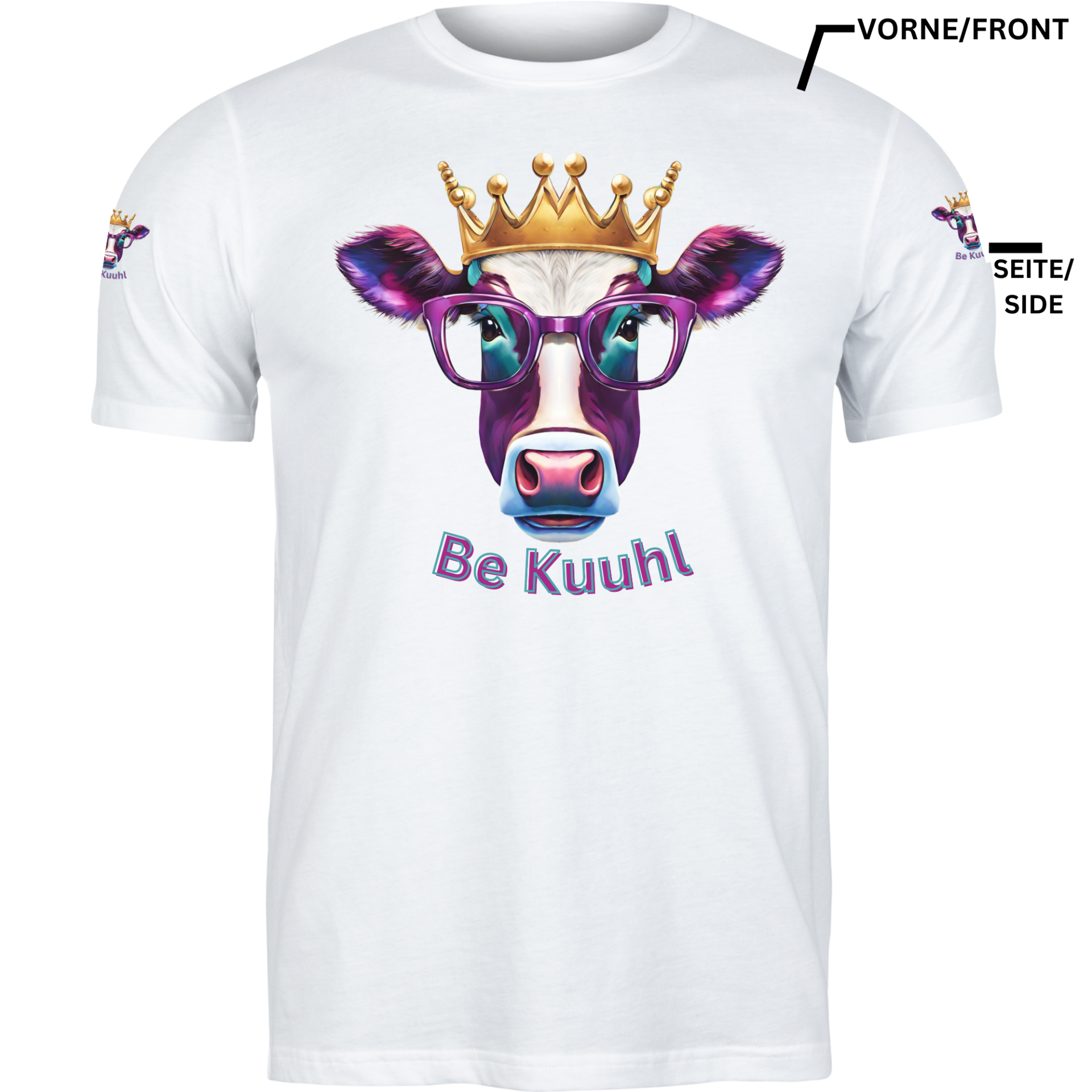T-Shirt Unisex "Be Kuuhl" 4 Seitiger Druck - König Alfons Color