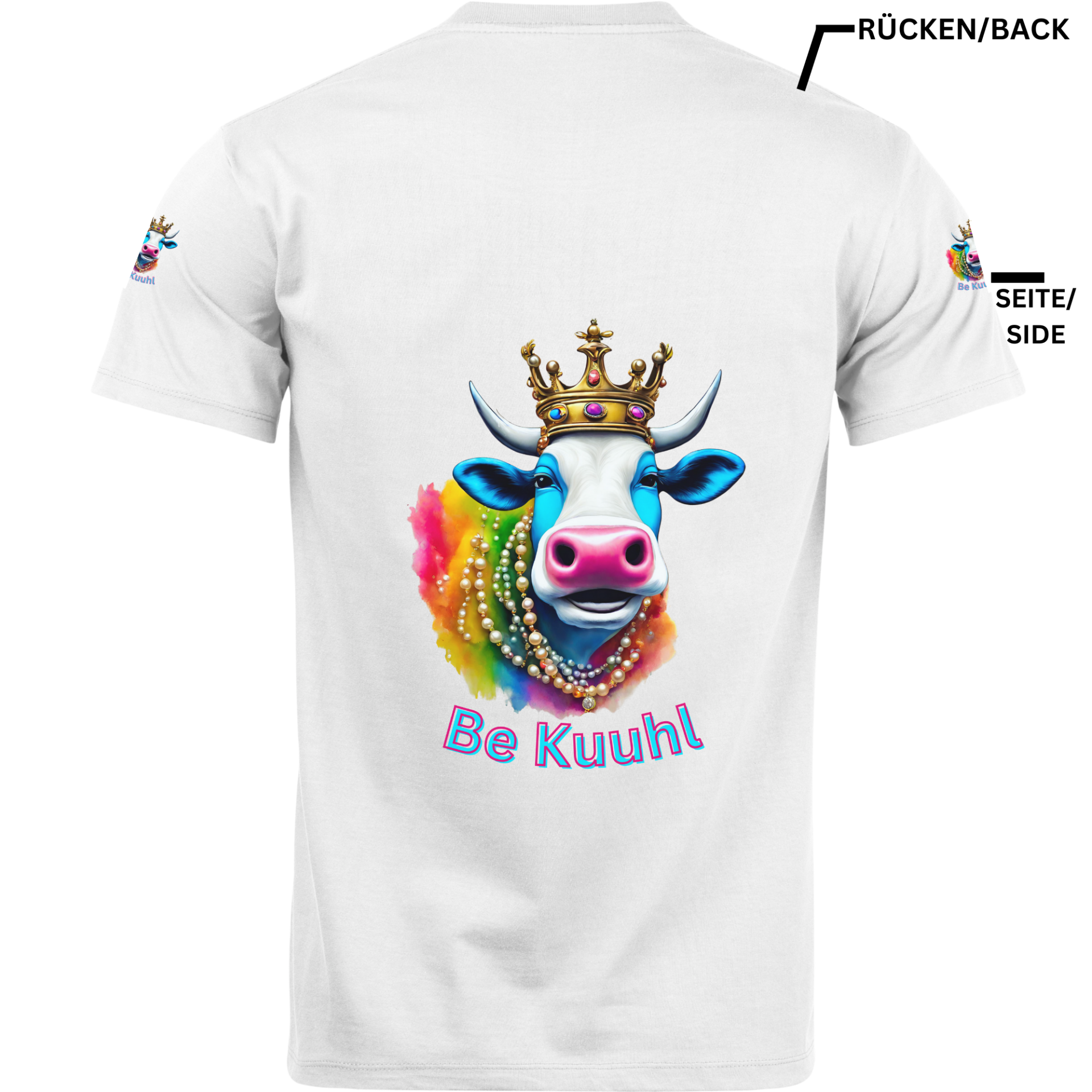 T-Shirt Unisex "Be Kuuhl" 4 Seitiger Druck - Königin Mutter Color