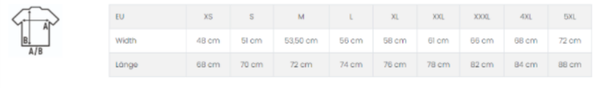 Größenlauf: XS, S, M, L, XL, XXL, 3XL, 4XL, 5XL