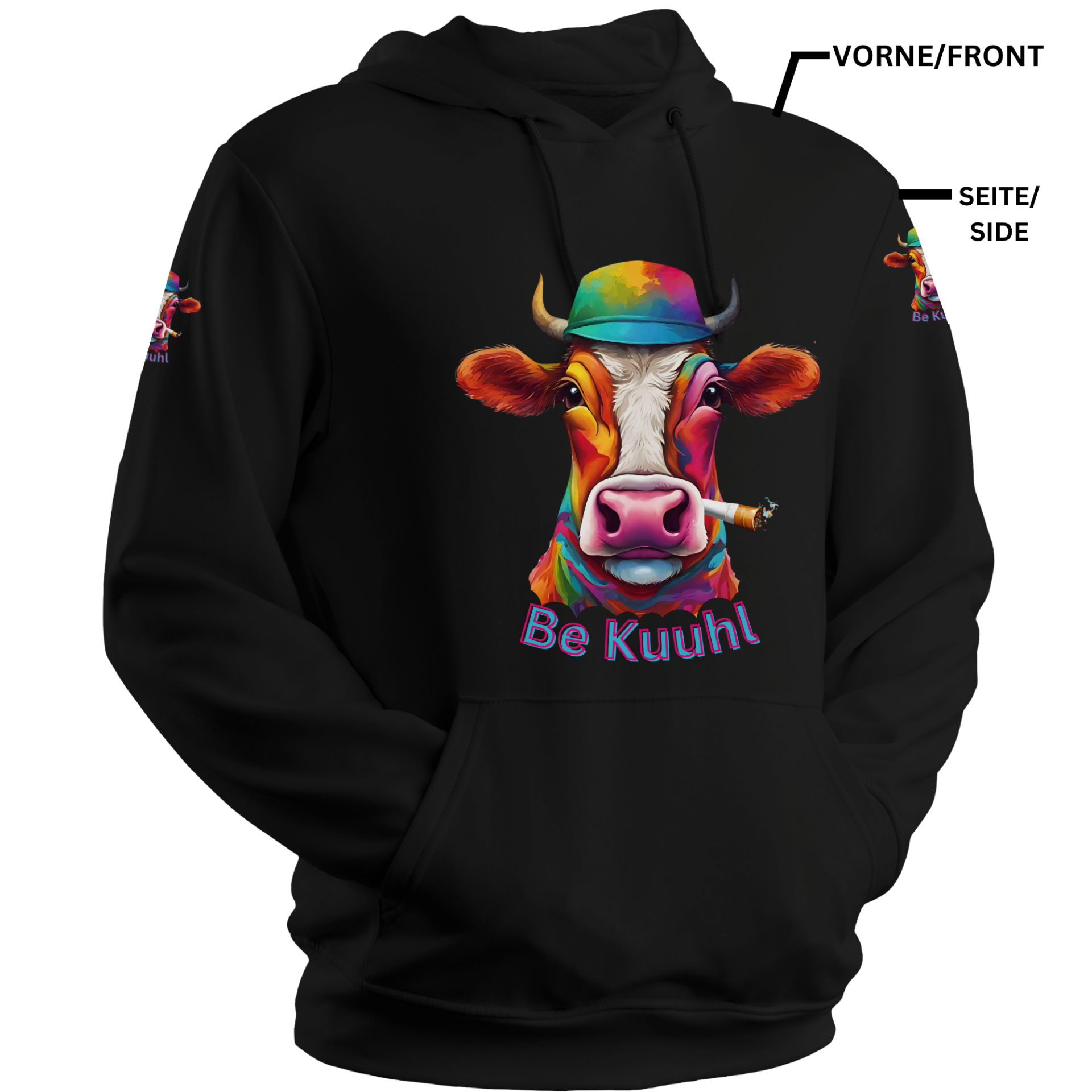 Kangaro Sweatshirt/Hoodie Unisex "Be Kuuhl" 4 Seitiger Druck - Hanf Bauer Willi Color