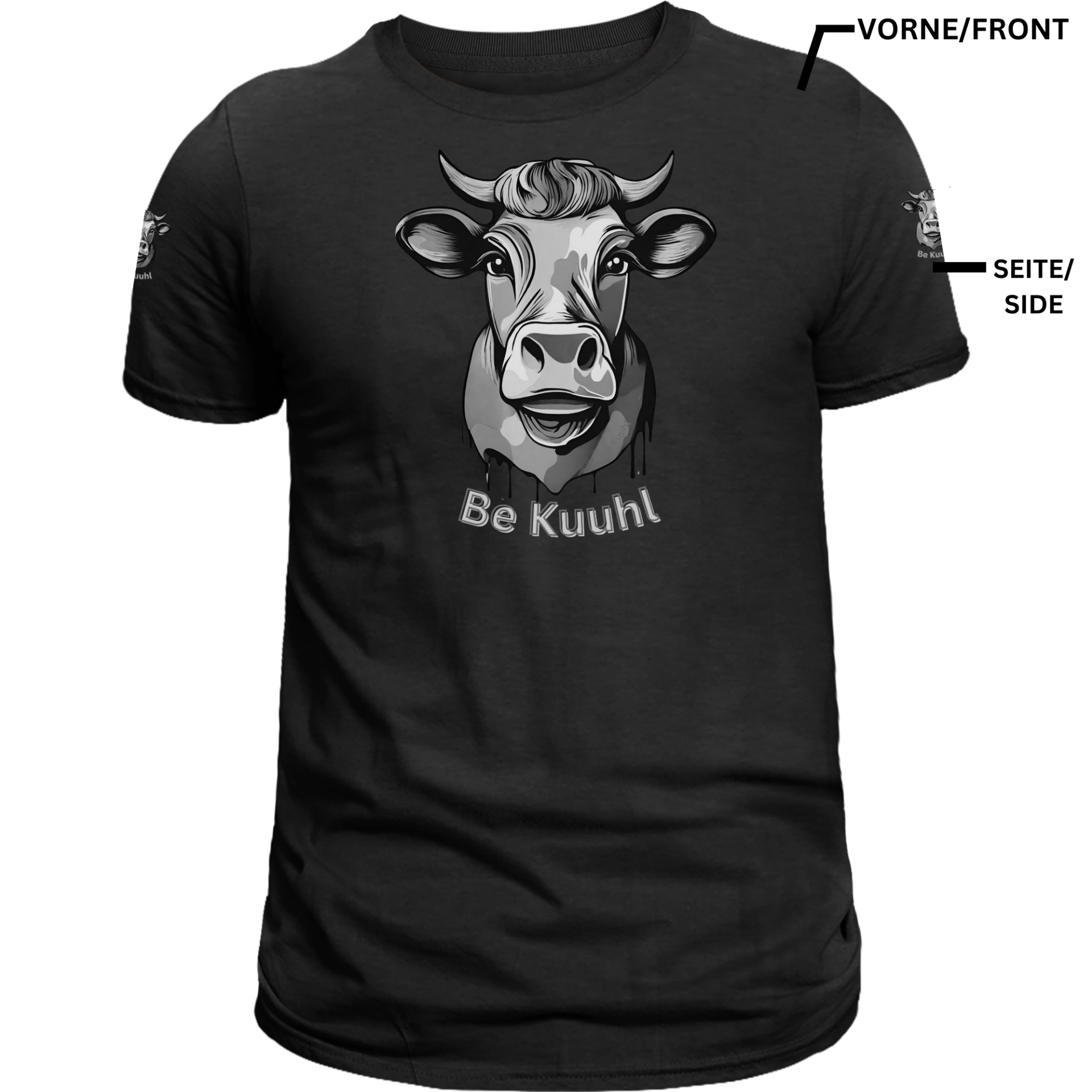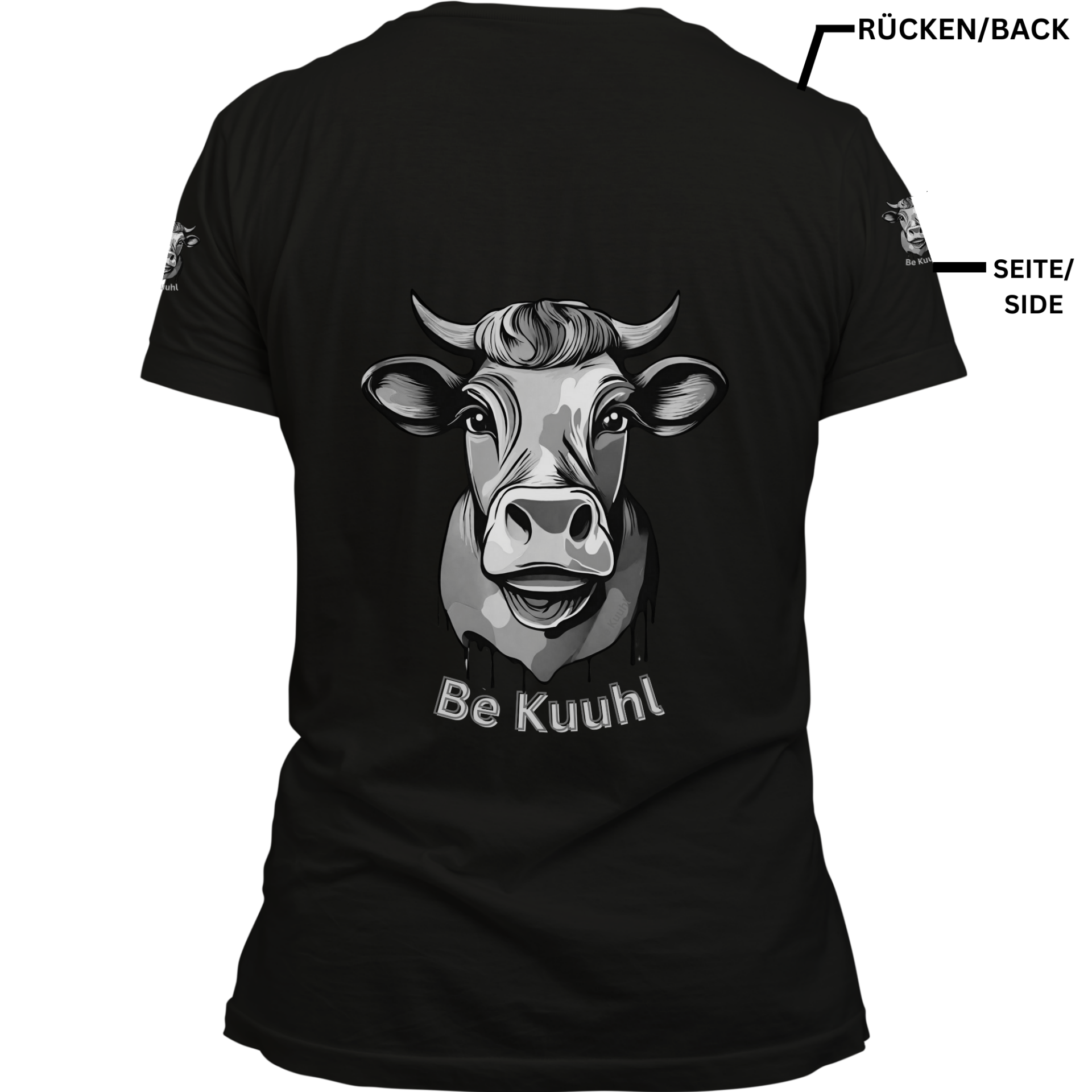 T-Shirt Unisex "Be Kuuhl" 4 Seitiger Druck - Urkuh Mani White/Black