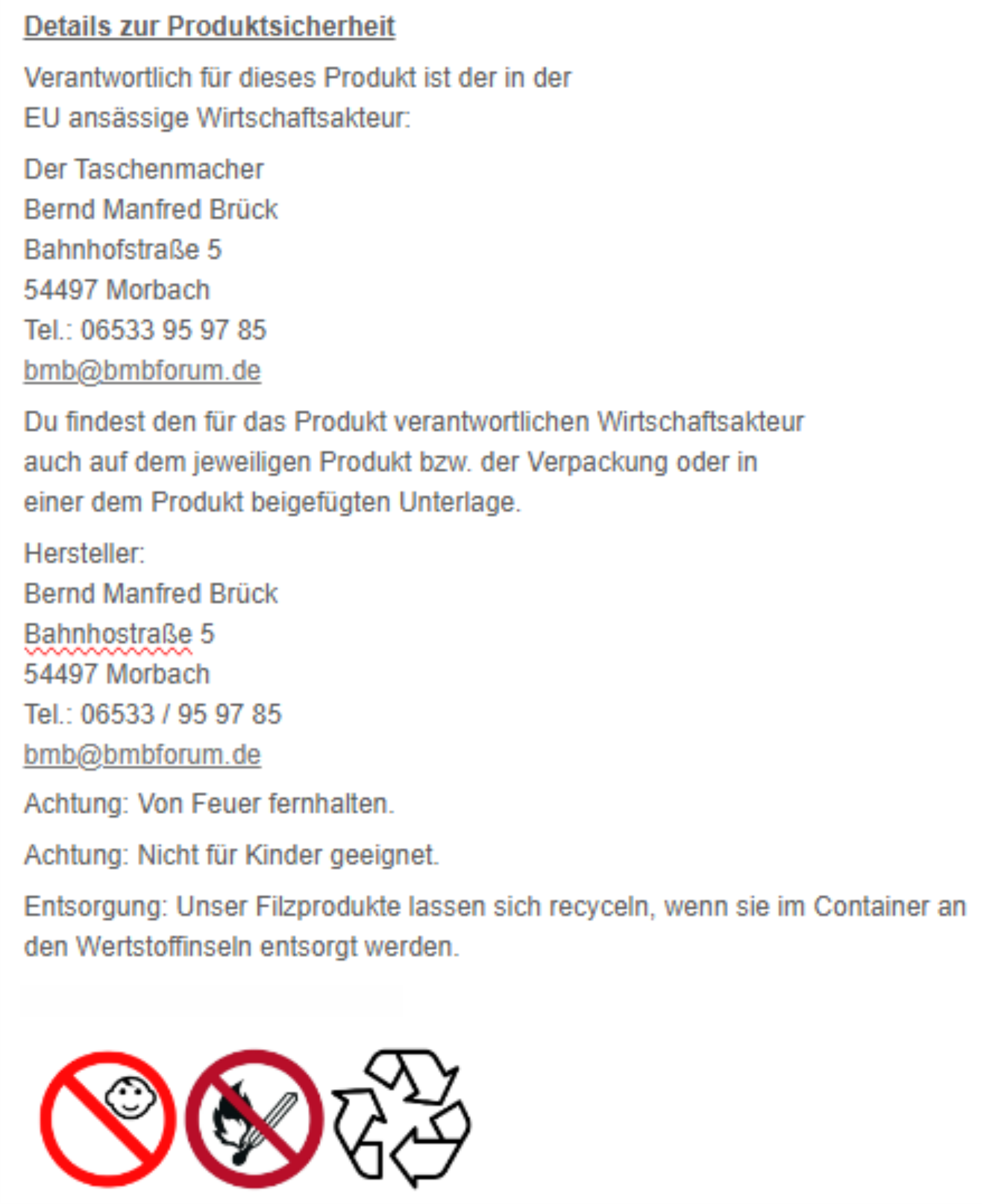 Herstellerangaben/ Produktsicherheit