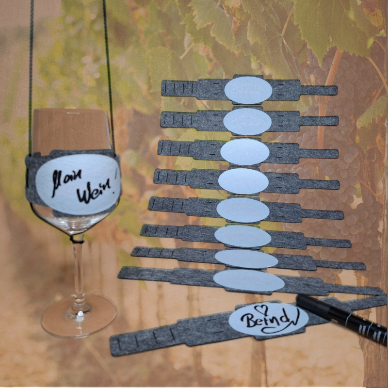 Weinglashalter zum selber Beschriften in Grau | Filz |