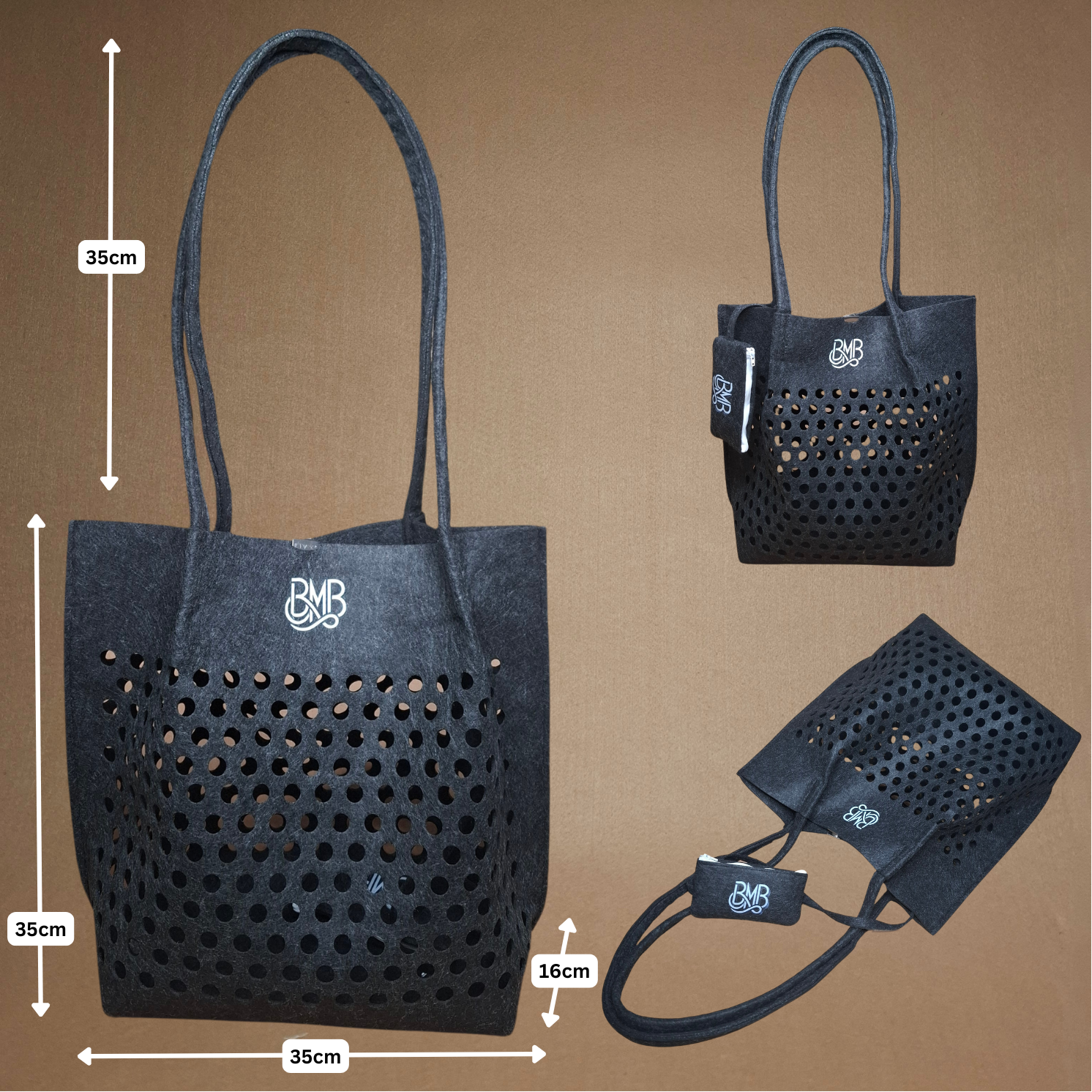 Diese moderne Schultertasche kombiniert ein großzügiges Fassungsvermögen mit einem federleichten Design. Hergestellt aus hochwertigem, veganem 3 mm Filz (100 % Polyester), bietet sie eine starke Tragekraft und ist zugleich angenehm leicht. Die schräg eingenähten Griffe an der Front verleihen ihr eine stylische Optik.