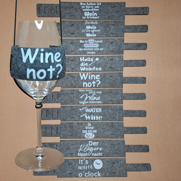Weinglashalterung aus hochwertigem Textilfilz – praktisch, stilvoll & sicher - Mit XL Druck - mit aus wählbarem Weinspruch klar und deutlich