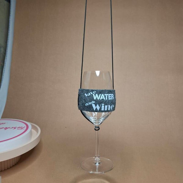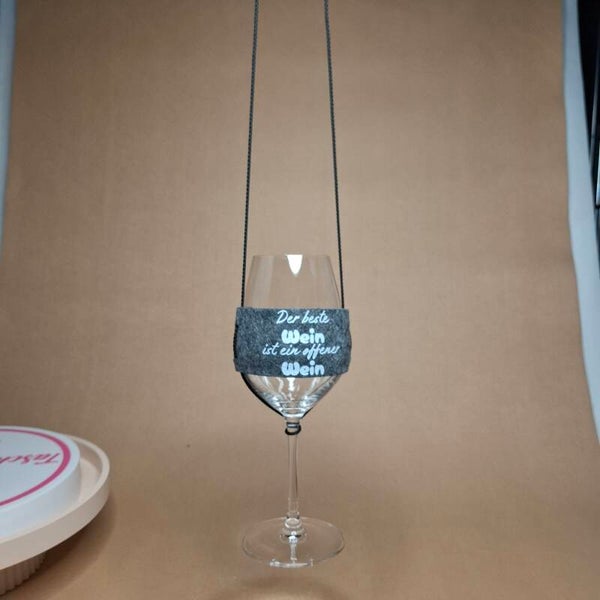 Weinglashalterung zum umhängen aus hochwertigem Textilfilz – praktisch, stilvoll & sicher