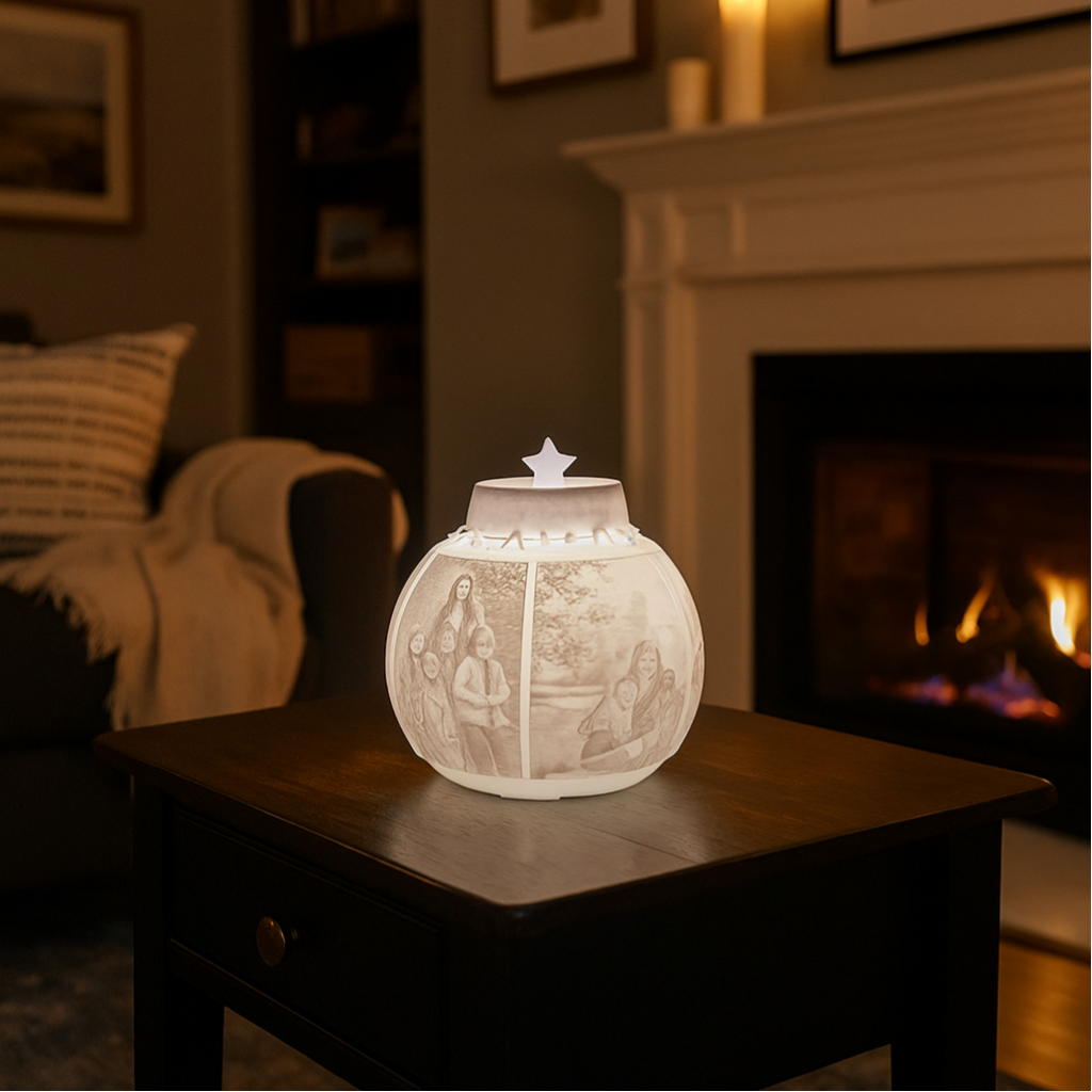 Beleuchtete Weihnachts-Tisch-Kugel Leuchte mit Wunschfotos der Ganzen Familie – Nachhaltig & Persönlich
