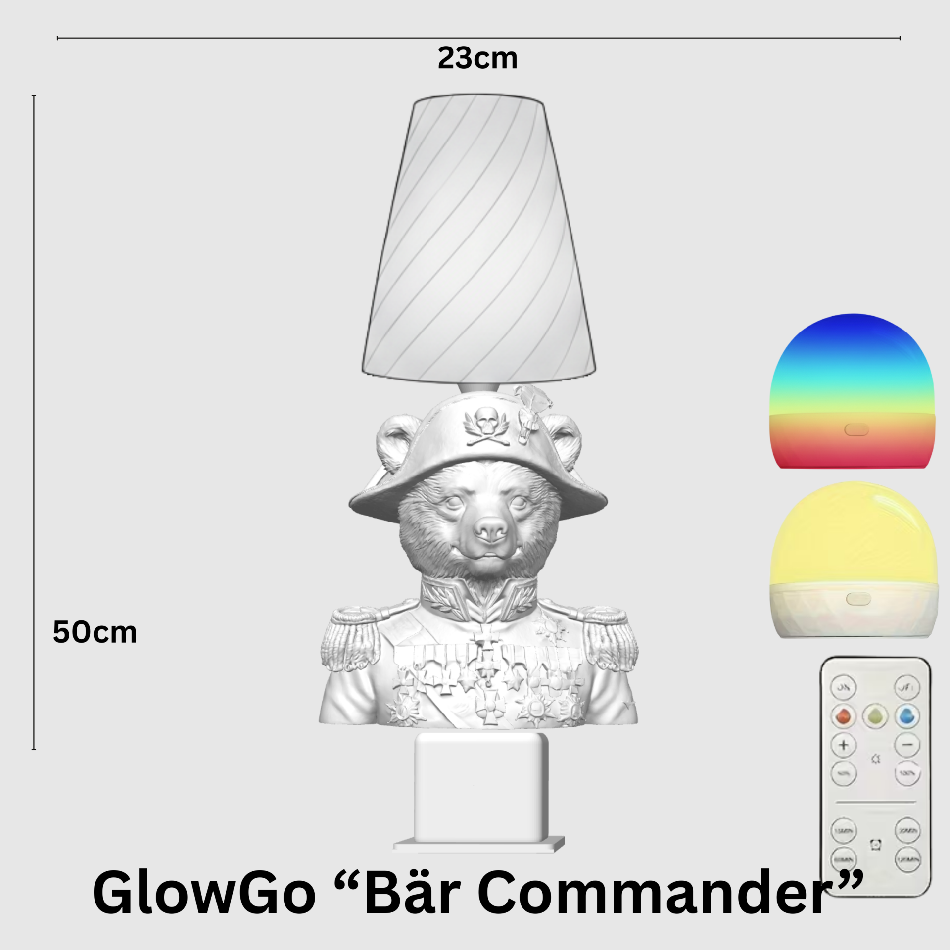 Die GlowGo "Dog Commander" ist ein einzigartiges Designobjekt und eine moderne Lichtquelle in einem. Die detailreiche Büste dient als stilvolles Lampenunterteil und wird durch einen modernen, transparenten Lampenschirm ergänzt.