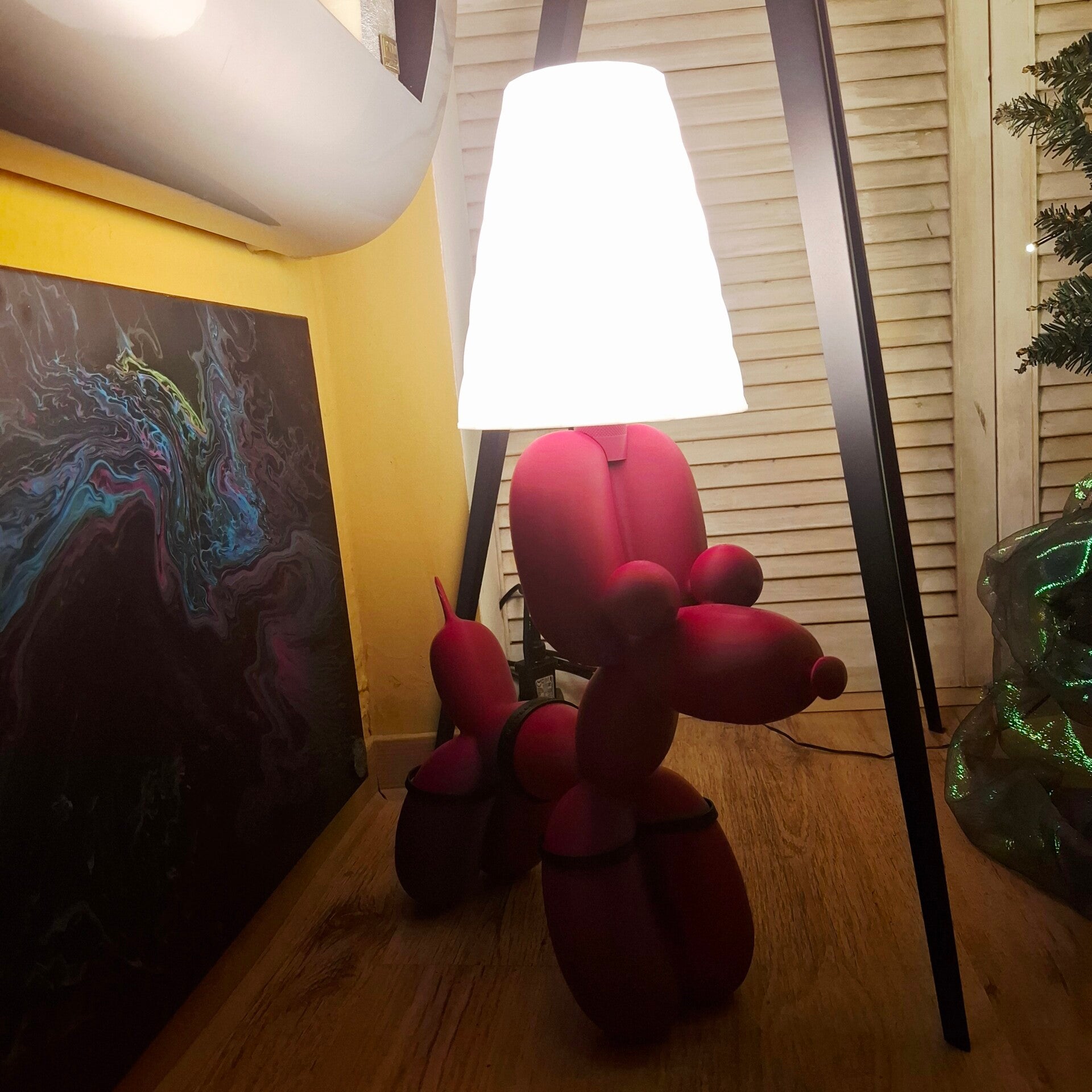 Die XL-Lampe bleibt ihren Wurzeln treu: Sie wird kunstvoll einem stilisierten Ballon-Hund mit elegantem Lampenschirm nachempfunden. Das Besondere bleibt die persönliche Note, denn die Lampe wird aus Ihrem eigenen Bild zur Büste umgearbeitet, wodurch jedes Exemplar ein unverwechselbares, riesiges Unikat ist.