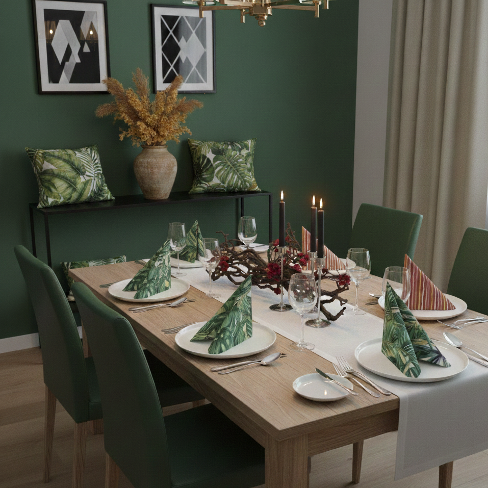 Brandschutz: Bitte beachte, dass Textilien aus Baumwolle brennbar sind. Halte die Servietten von offenen Flammen (z. B. Kerzen) fern.