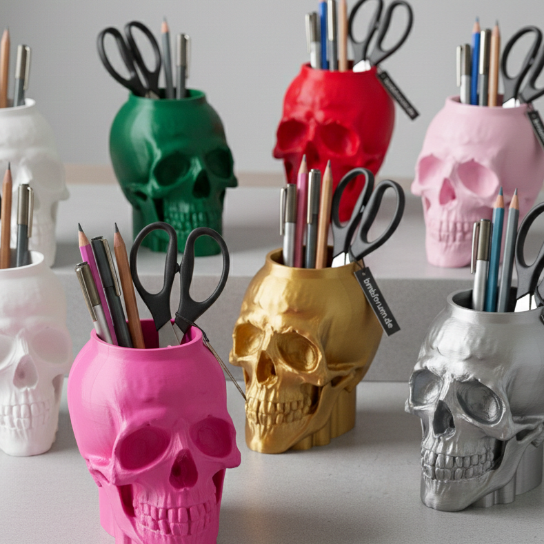 Design Totenkopf-Gefäß – Stilvolles Utensilo & Bürstenhalter
