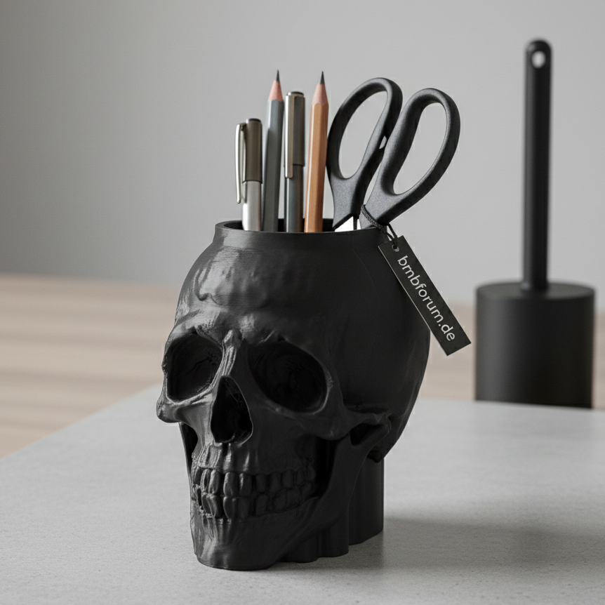 Verleihen Sie Ihrem Zuhause eine Prise Extravaganz. Dieses detailgetreue Gefäß in Totenkopfoptik vereint düstere Ästhetik mit praktischem Nutzen. Ob als markanter Stiftehalter auf dem Schreibtisch, als Utensilo für Werkzeuge oder als passgenaue Halterung für unsere Design-Toilettenbürste – dieser Totenkopf setzt überall ein Statement.
