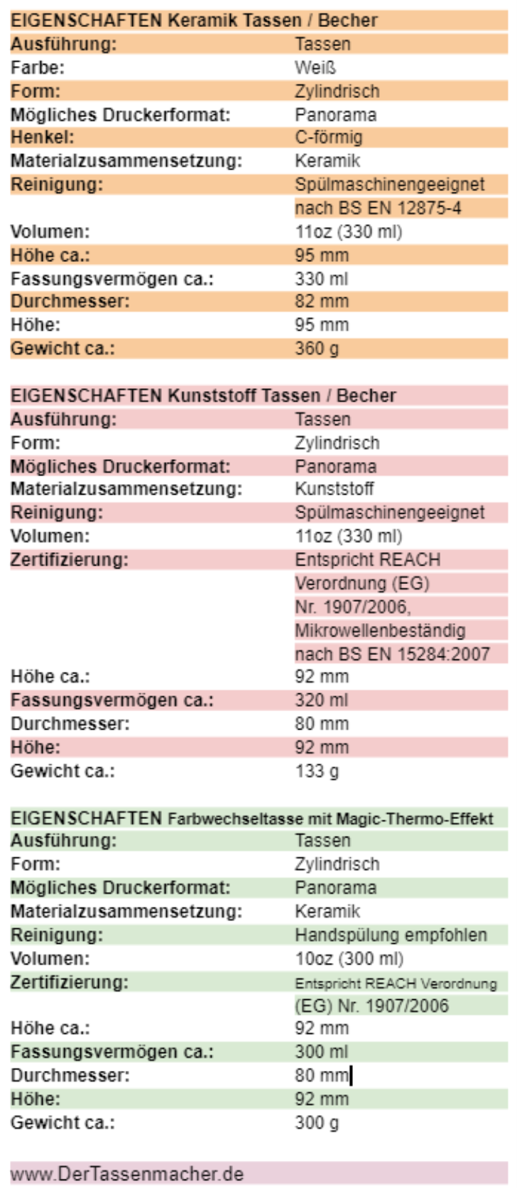Motiv Tassen / Becher Herstellung Mengenrabatte